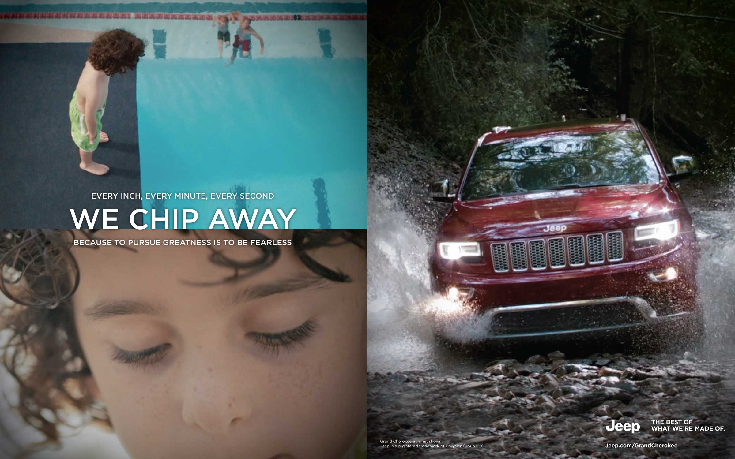 This is a tale inspired by stories of human endeavor. As Americans, our spirit and commitment motivates us to find our individual greatness. Every day, we chip away to be our personal best and the Grand Cherokee embodies this passion and sense of purpose. Worked directly with the Chief Creative Officer and Head of Jeep Advertising on this 1.2 million dollar Grand Cherokee Campaign.